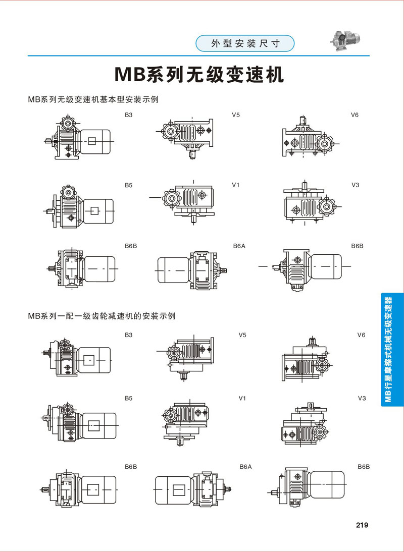 安裝形式 >> MB行星摩擦式機械無級變速機-
