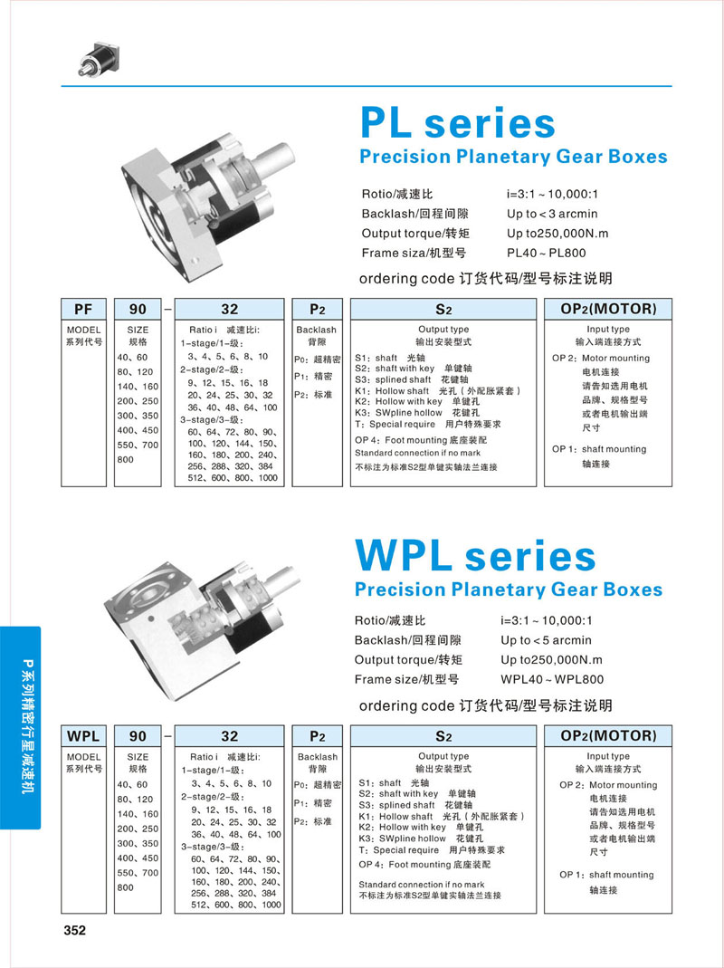 產(chǎn)品參數(shù) >> P系列精密行星減速機(jī)-