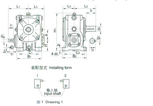 件:蝸桿輸入轉(zhuǎn)速不超過(guò)1500r/min;工作環(huán)境溫度-40~~40℃,當(dāng)