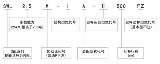 SWL蝸輪絲杠升降JB/T8809-1998型號說明與標記方法: