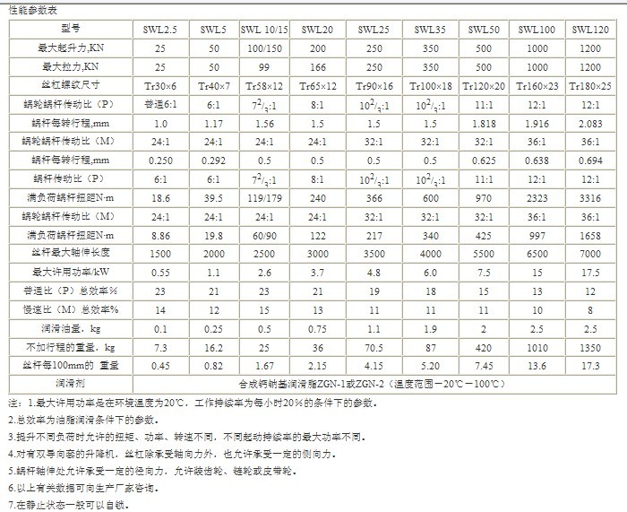 SWL系列蝸輪絲杠升降機是一種基礎起重部件,符合JB/T8809-1998(原JB/ZQ4391-86)標準。該產品可廣泛用于機械、冶金、建筑、化工、醫療、文化衛生等各個行業。承載能力2.5—120T。具有結構緊湊、體積小、重量輕、動力源廣泛、噪音小、安裝方便、使用靈活、功能多、配套形式多、可靠性高、使用壽命長等優點。具有提升、降落、推進、翻轉等功能,可以單臺或組合使用。能按一定程序準確地控制調整提升或推進的高度,可以用電動機或其它動力直接帶動,也可以手動。最高輸入轉速1500r/min,最大提升速度2.7m/min。有不同的結構型式和裝配方式,提升高度按用戶的要求制造。該裝置可以自鎖。