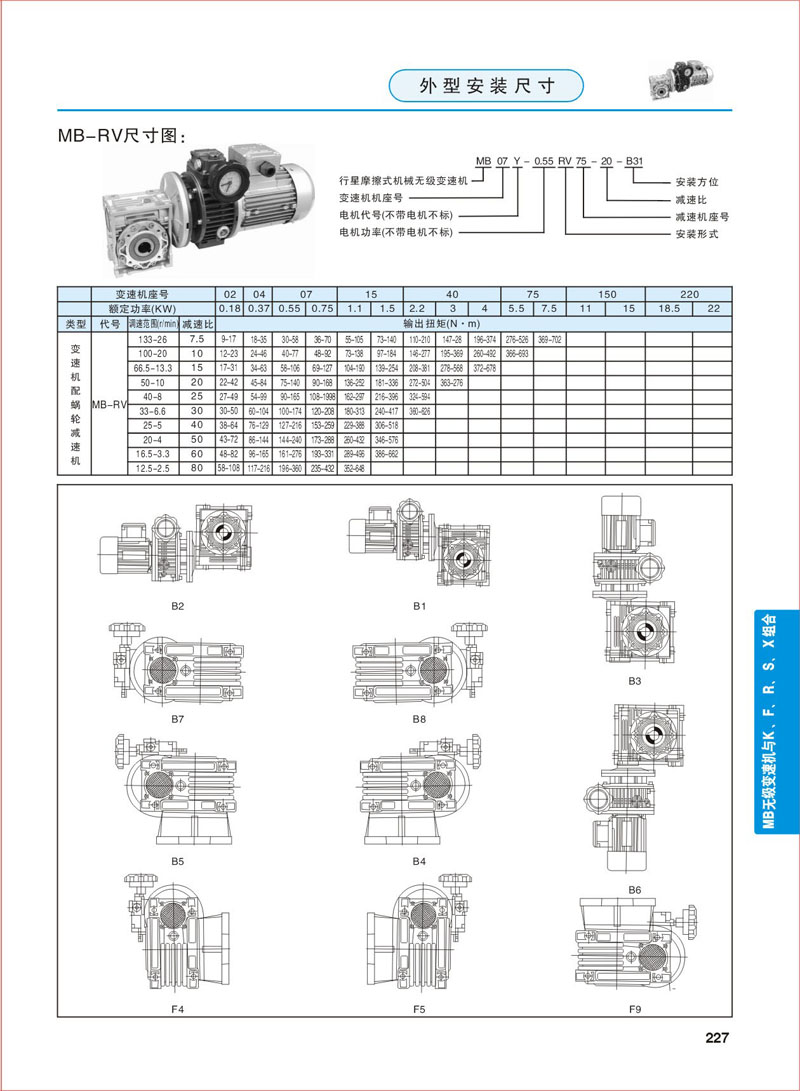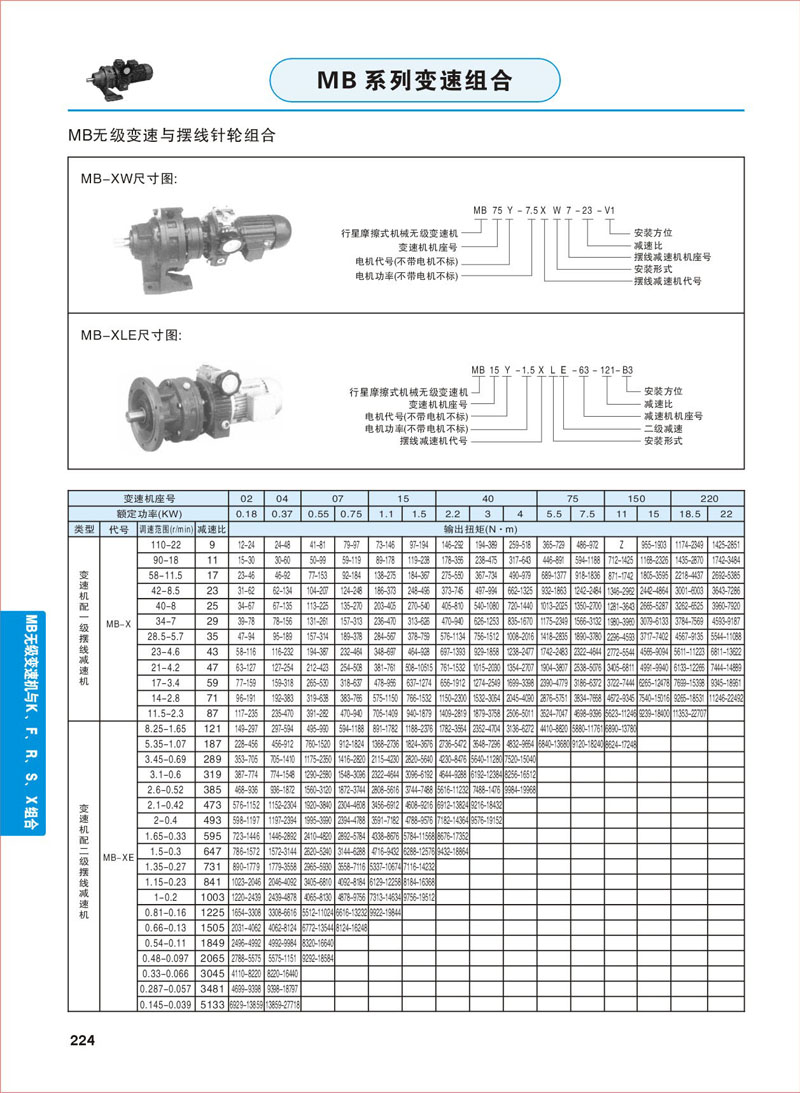 如何選型 >> MB無級(jí)變速機(jī)與KFRSX組合-
